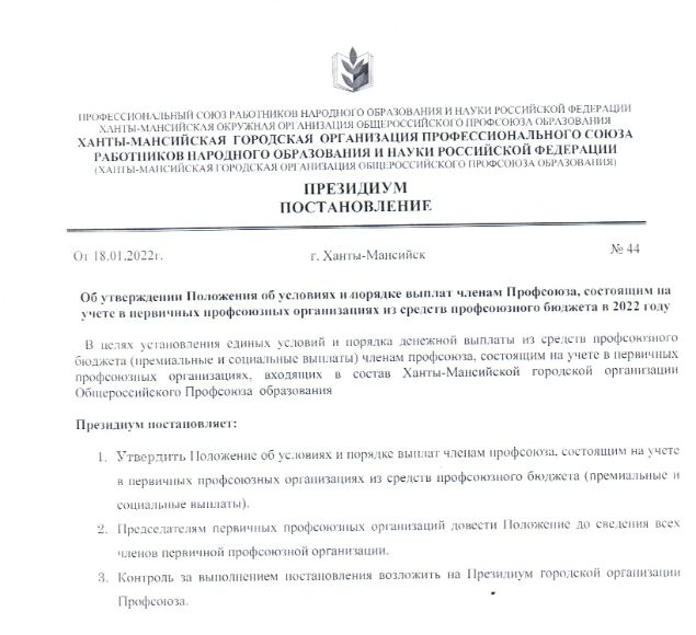 Выплаты из средств профсоюза