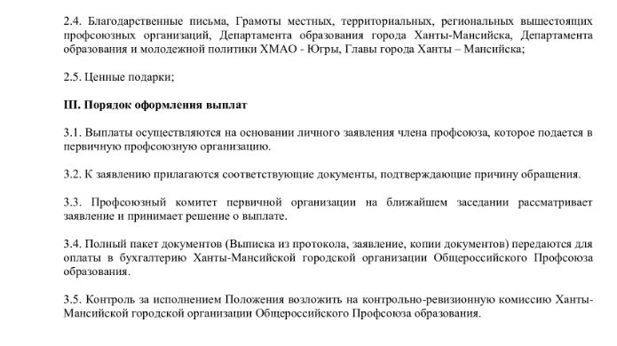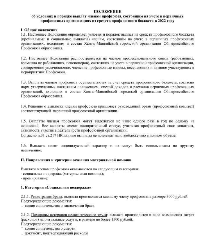 • Выплаты из средств профсоюза